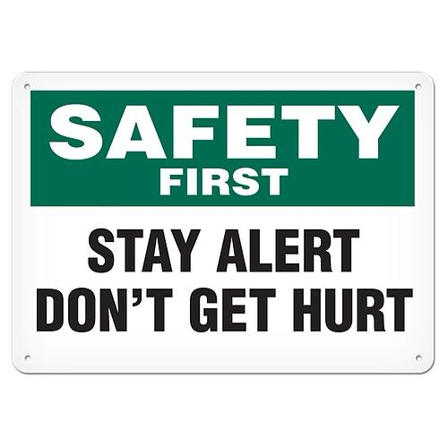 Incom, SC5032V, Safety First Sign "Stay Alert Don't Get Hurt" 14" x 20" Adhesive Vinyl