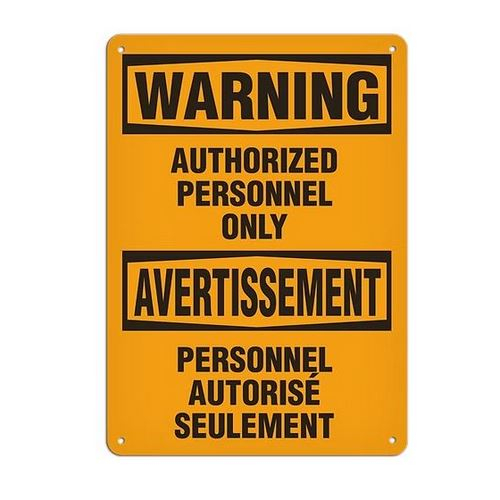 Incom, SC6014AL, Warning (Bilingual) Safety Sign: "Authorized Personnel Only" 14" x 20" Aluminum + UV Lamination