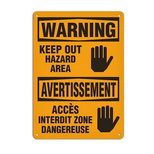 Incom, SC6016AL, Warning (Bilingual) Safety Sign: "Keep Out Hazard Area" 14" x 20" Aluminum + UL Lamination