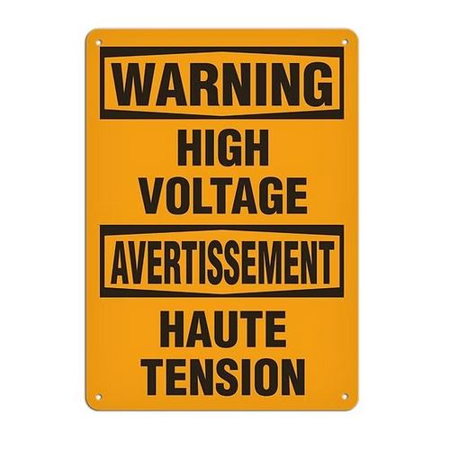Incom, SC6017A, Warning (Bilingual) Safety Sign: "High Voltage" 14" x 20" Aluminum