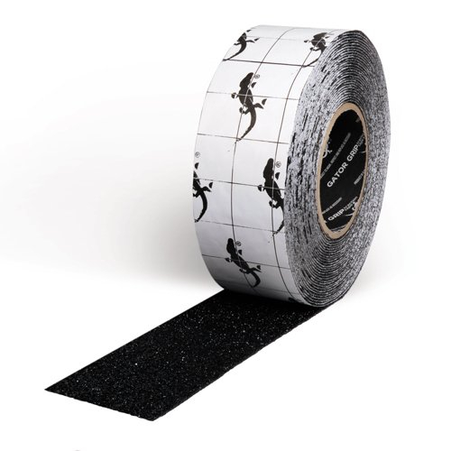 Heavy foot traffic and dirty work environments can clog up standard grit products with mud, oil, saw dust, liquids and grease. Our Extra Coarse Gator Grip® offers a very deeply textured (36-grit) surface to continue to offer non-slip protection, even in the dirtiest conditions. Tape can even be spray painted and still maintain a anti-slip surface. Tape is water-proof for both indoor and outdoor applications, and offers excellent hydrocarbon resistance. This tape has a very aggressive grit surface and is recommended for areas with heavy debris only.