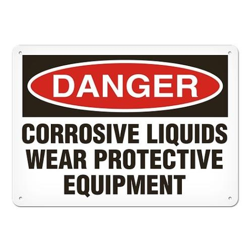 Incom, SS1011A, Sign Danger "Corrosive Liquids Wear Protective Equipment", 10" x 14", Aluminum