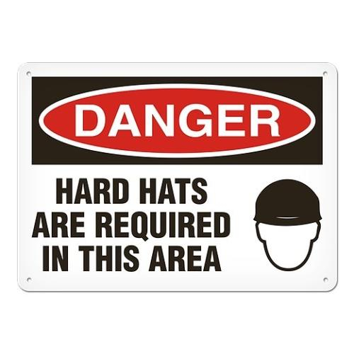 Incom, SS1017AL, Sign Danger "Hard Hats are Required in This Area", 10" x 14", Aluminum with UV Lamination