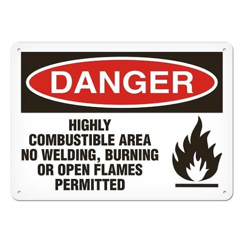 Incom, SS1031A, Sign Danger "Highly Combustible Area no Welding, Burning or Open Flames Permitted", 10" x 14", Aluminum