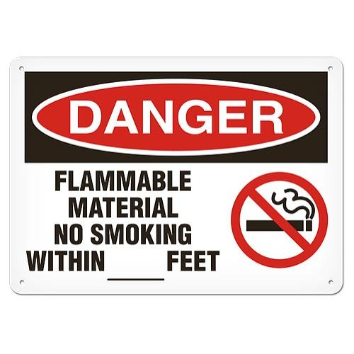 Incom, SS1072AL, Sign "DANGER - Flammable Material No Smoking Within ___ Feet", 10" x 14", Aluminum with UV Lamination