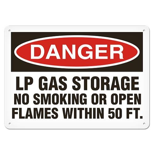 Incom, SS1079P, Sign "DANGER - LP Gas Storage No Smoking Or Open Flames Within 50 Ft.", 10" x 14", Semi-Rigid Plastic