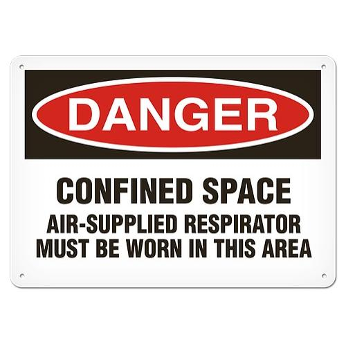 Incom, SS1088AL, Sign "DANGER - Confined Space Air Supplied Respirator Must Be Worn In This Area", 10" x 14", Aluminum with UV Lamination