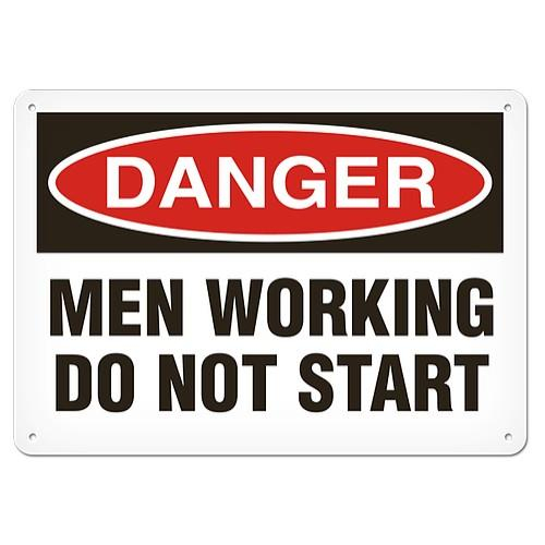Incom, SS1092AL, Sign "DANGER - Men Working Do Not Start", 10" x 14", Aluminum with UV Lamination