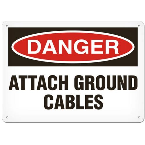 Incom, SS1146P, Sign "Danger - Attach Ground Cable", 10" x 14", Semi-Rigid Plastic