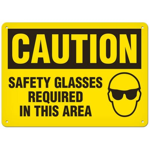 Incom, SS2016P, Sign "Caution - Safety Glasses Required In This Area", 10" x 14", Semi-Rigid Plastic