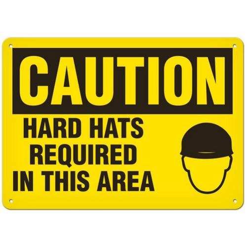 Incom, SS2018P, Sign "Caution - Hard Hats Required In This Area", 10" x 14", Semi-Rigid Plastic