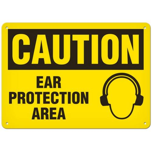 Incom, SS2019A, Sign "Caution - Ear Protection Area", 10" x 14", Aluminum