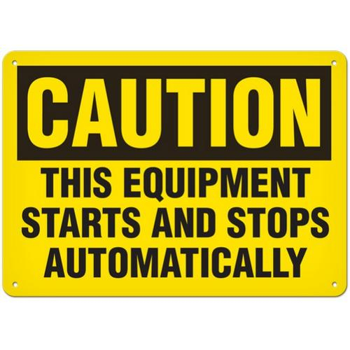 Incom, SS2059AL, Sign "Caution - This Equipment Starts And Stops Automatically", 10" x 14", Aluminum with UV Lamination