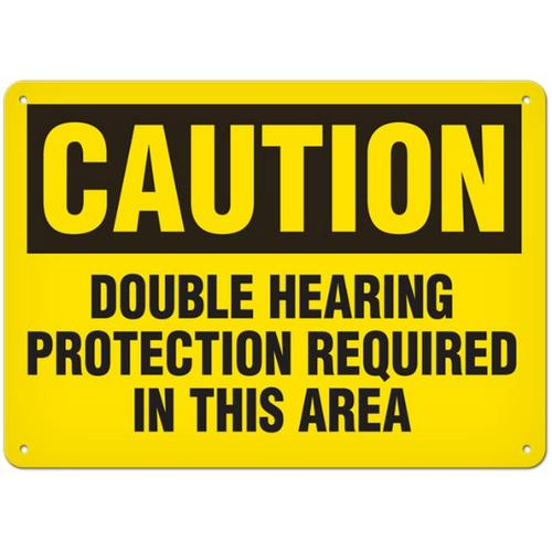 Incom, SS2061P, Sign "Caution - Double Hearing Protection Required In This Area", 10" x 14", Semi-Rigid Plastic