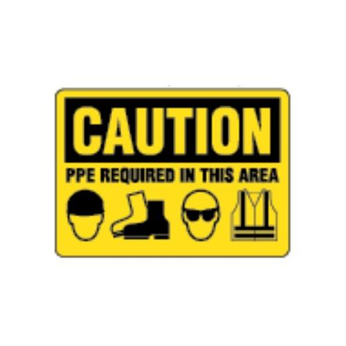 Incom, SS2067A, Sign "Caution - PPE Required in This Area", 10" x 14", Aluminum
