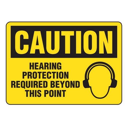 Incom, SS2080A, Sign Caution "Hearing Protection Required Beyond This Point", 10" x 14", Aluminum