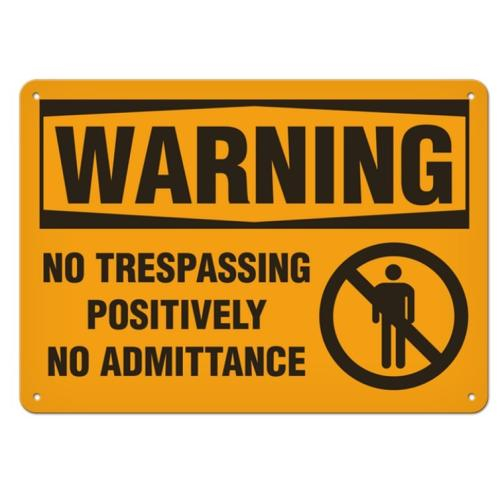Incom, SS3006AL, Sign Warning "No Trespassing Positively No Admittance", 10" x 14", Aluminum with UV Lamination