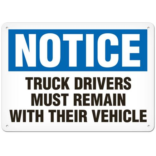Incom, SS4021A, Sign "Notice - Truck Drivers Must Remain with their Vehicle", 10" x 14", Aluminum