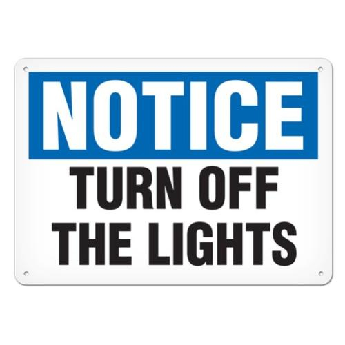 Incom, SS4027P, Sign Notice "Turn Off the Lights", 10" x 14", Semi-Rigid Plastic