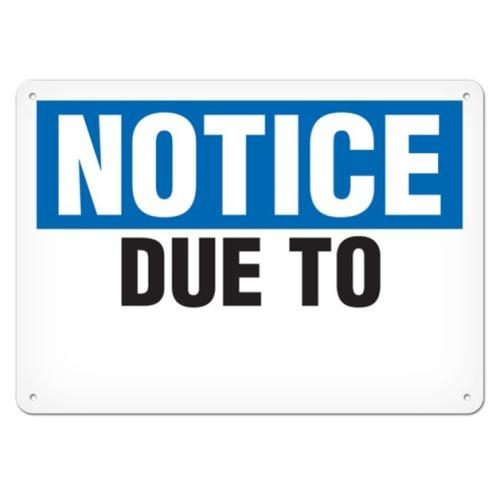 Incom, SS4031P, Sign Notice "Due To", 10" x 14", Semi-Rigid Plastic
