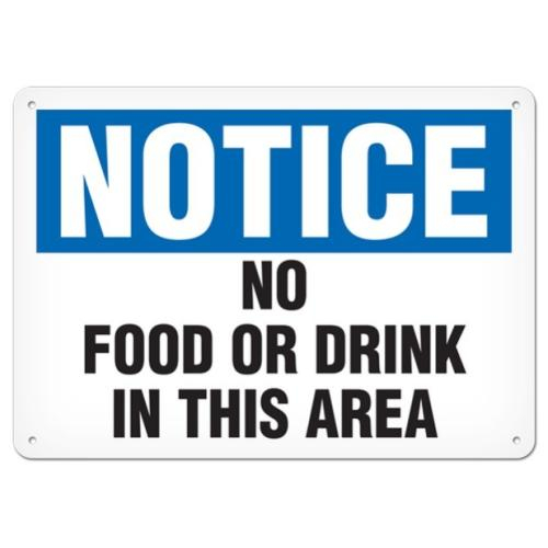 Incom, SS4033A, Sign Notice "No Food or Drink in This Area", 10" x 14", Aluminum