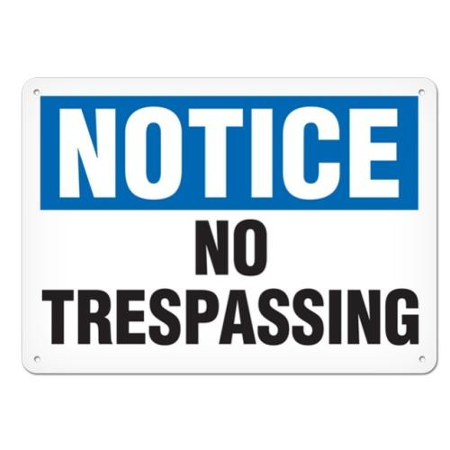 Incom, SS4041AL, Sign Notice "No Trespassing", 10" x 14", Aluminum with UV Lamination