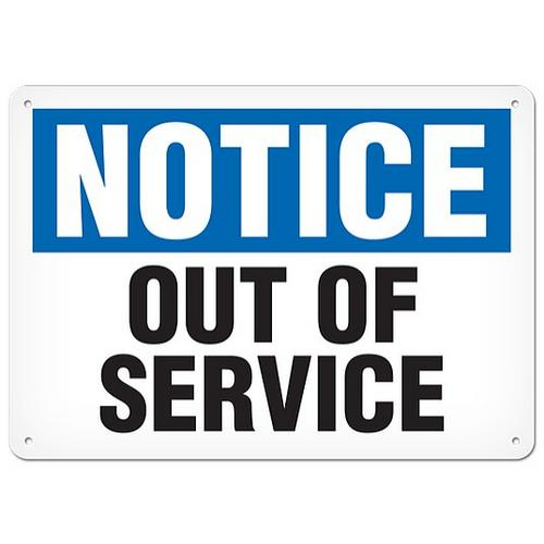 Incom, SS4046V, Sign "Notice Out of Service", 10" x 14", Adhesive Vinyl