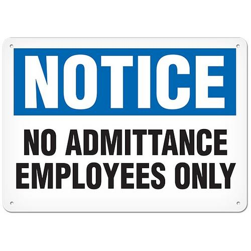Incom, SS4047P, Sign "Notice No Admittance Employees Only", 10" x 14", Semi-Rigid Plastic