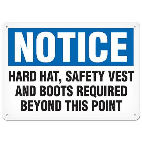 Incom, SS4056P, Sign "Notice Hard Hat, Safety Vest and Boots Required Beyond This Point", 10" x 14", Semi-Rigid Plastic