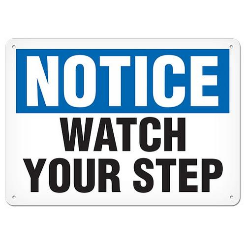 Incom, SS4062P, Sign "Notice Watch Your Step", 10" x 14", Semi-Rigid Plastic