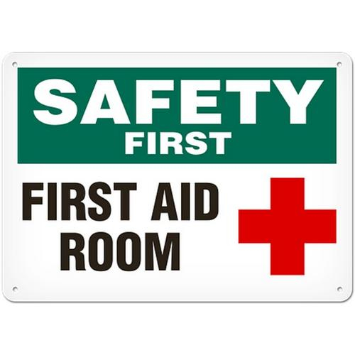 Incom, SS5000A, Sign Safety First "First Aid Room", Aluminum, 10" x 14"