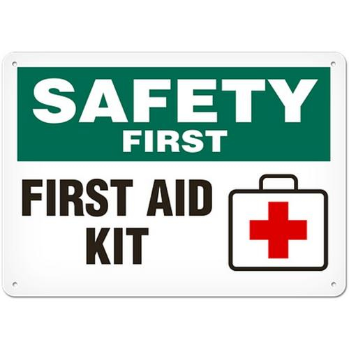 Incom, SS5001AL, Sign Safety First "First Aid Kit", Aluminum with UV Lamination, 10" x 14"