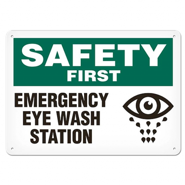 Incom, SS5004V, Sign Safety First "Emergency Eye Wash Station", Adhesive Vinyl, 10" x 14"