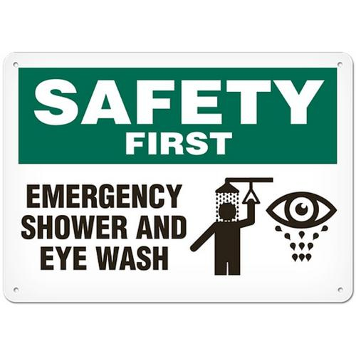 Incom, SS5005P, Sign Safety First "Emergency Shower and Eye Wash", Semi-Rigid Plastic, 10" x 14"