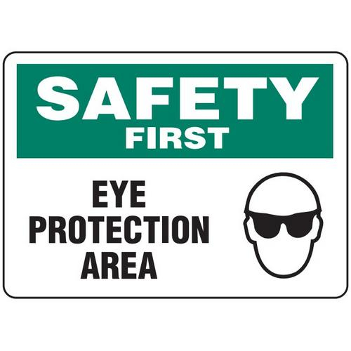Incom, SS5006P, Sign "Safety First - Eye Protection Area", 10" x 14", Semi-Rigid Plastic