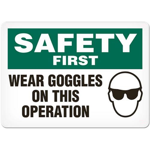 Incom, SS5007V, Sign Safety First "Wear Goggles On This Operation", Adhesive Vinyl, 10" x 14"