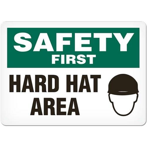 Incom, SS5010V, Sign Safety First "Hard Hat Area", Adhesive Vinyl, 10" x 14"