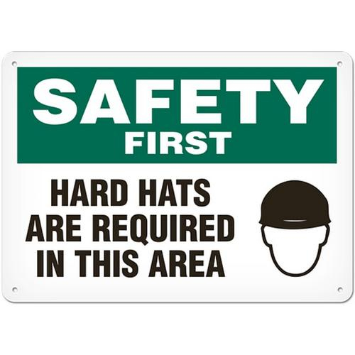 Incom, SS5011AL, Sign Safety First "Hard Hats Required In This Area", Aluminum with UV Lamination, 10" x 14"