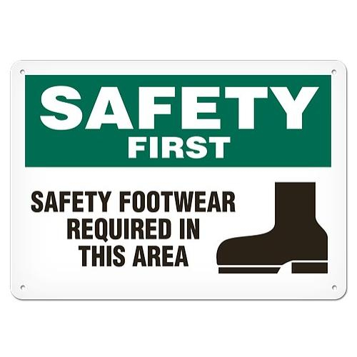 Incom, SS5013P, Sign "Safety First - Safety Footwear Reqired in this Area", 10" x 14", Semi-Rigid Plastic
