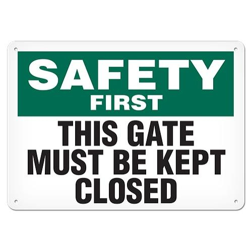 Incom, SS5024A, Sign "Safety First - This Gate Must Be Kept Closed", 10" x 14", Aluminum