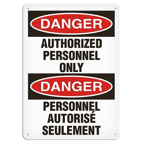 Incom, SS6000AL, 10" x 14" Aluminum with UV Lamination Sign "Bilingual Danger - Authorized Personnel Only"