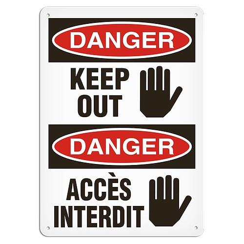 Incom, SS6001AL, 10" x 14" Aluminum with UV Lamination Sign "Bilingual Danger - Keep Out"