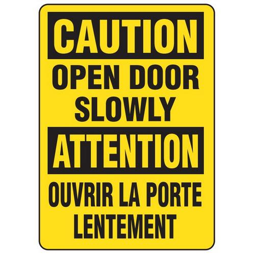 Incom, SS6012A, Caution Sign "Open Door Slowly", 10" x 14", Aluminum, English/French