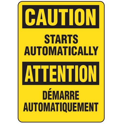 Incom, SS6013A, Caution Sign "Starts Automatically", 10" x 14", Aluminum, English/French