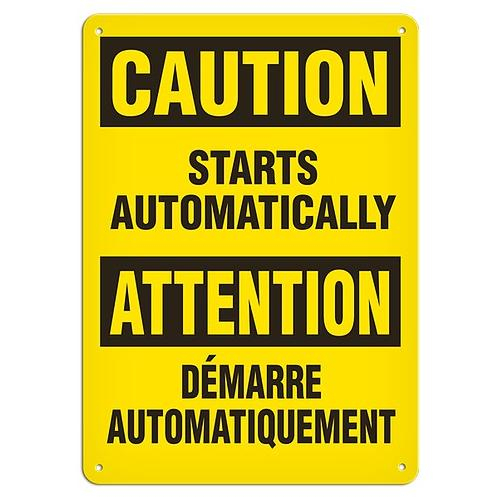 Incom, SS6013AL, 10" x 14" Aluminum with UV Lamination Sign "Bilingual Caution - Starts Automatically"