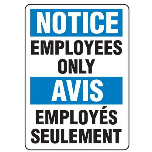 Incom, SS6021A, Notice Sign "Employees Only", 10" x 14", Aluminum, English/French