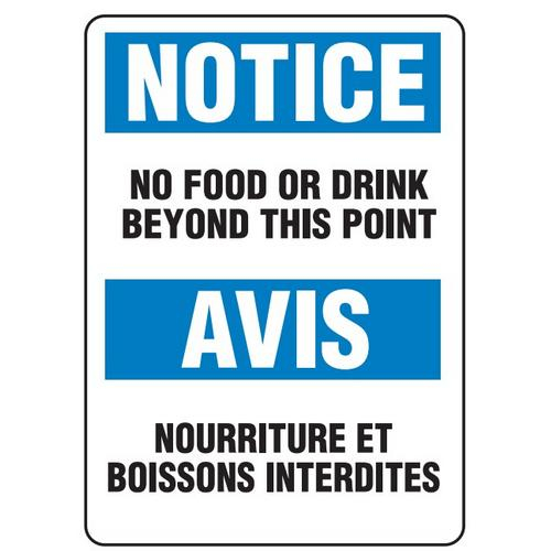 Incom, SS6026A, Notice Sign "No Food or Drink Beyond This Point", 10" x 14", Aluminum, English/French