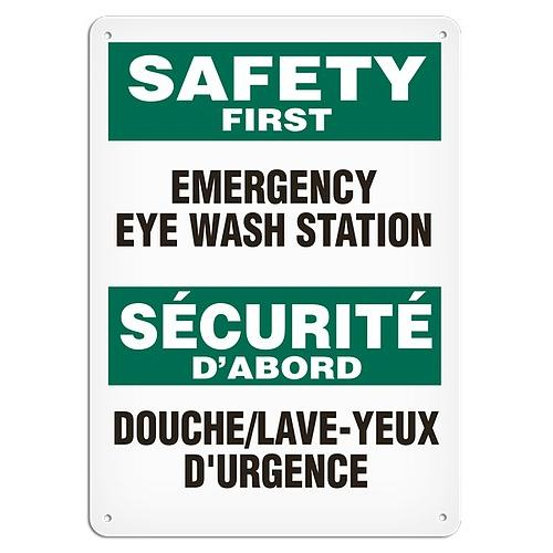 Incom, SS6031V, 10" x 14" Adhesive Vinyl Sign "Bilingual Safety First - Emergency Eye Wash Station"