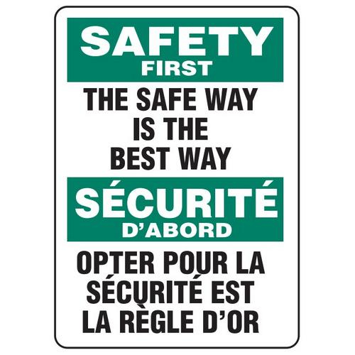 Incom, SS6034A, Safety Sign "The Safe Way is The Best Way", 10" x 14", Aluminum, English/French