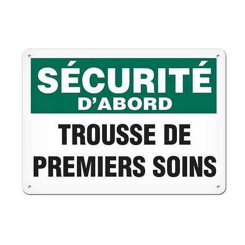 Incom, SSF5001AL, Securite D'abord - "Trousse de Premiers Soins Safety Sign" 10" x 14" Aluminum + UV Lamination